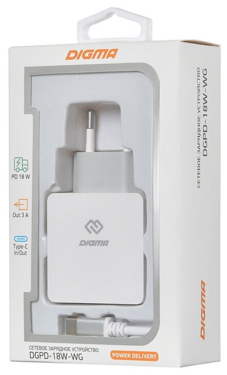 Сетевое зар./устр. Digma DGPD-18W-WG 3A PD кабель USB Type C белый информация: