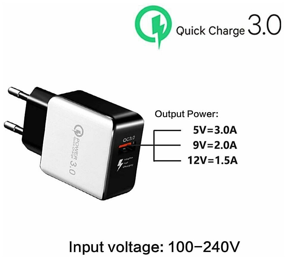 Адаптер сетевой (зарядка) для смартфона и гаджетов (Quick Charge Power 3.0, 18W, 3.1A) информация: