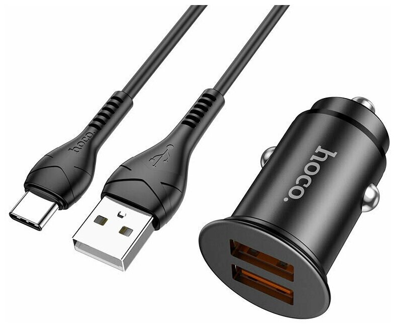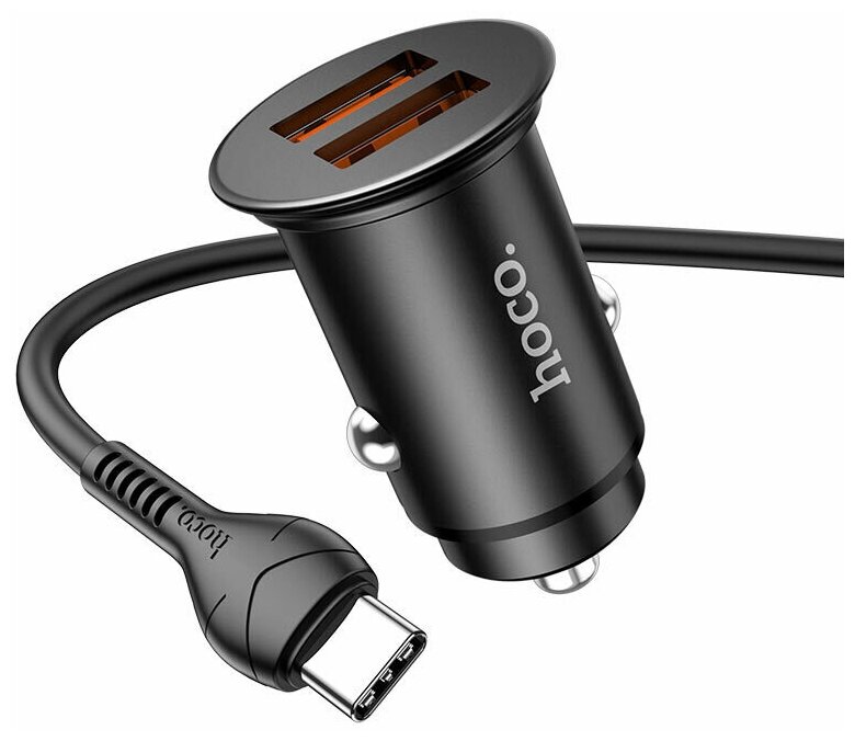 Зарядное устройство автомобильное с кабелем Type-c и двумя портами USB Quick Charge 18W, 36W информация: