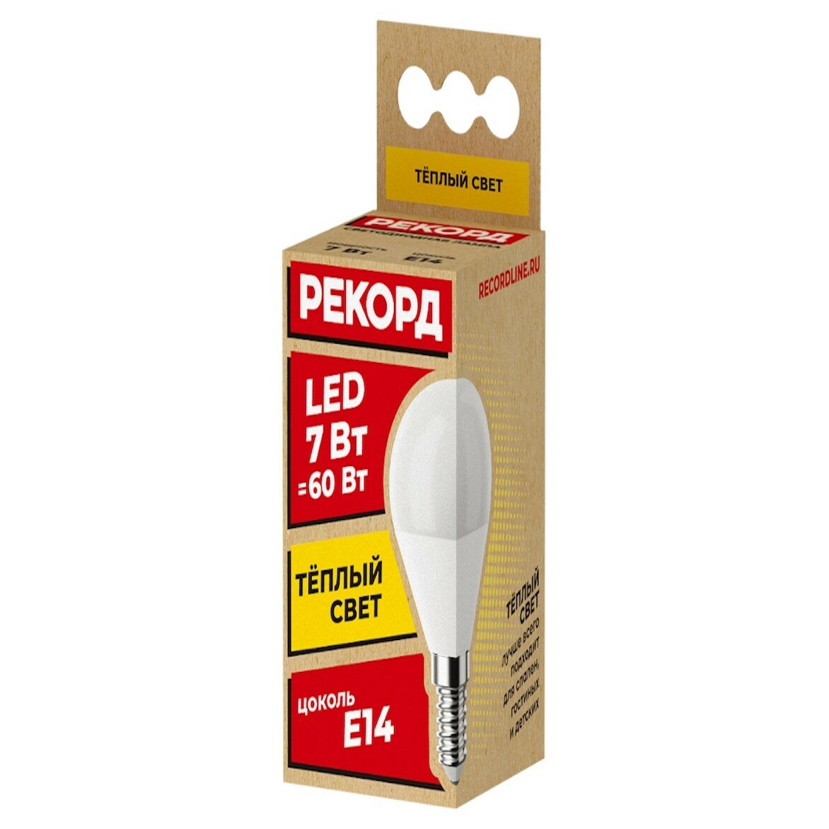 Светодиодная лампа рекорд LED P45 7W Е14 3000К 23883 информация: