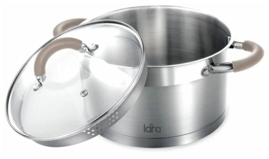 Отзывы на LR02-343 Кастрюля LARA (нерж) Берлин 22x12см, 4,4л, капс.дно,шкала,силик.накл,крыш.дуршлаг ()