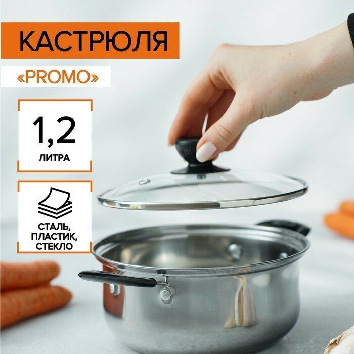 10 цен на Кастрюля Promo, 1,2 л, 18х8 см, стеклянная крышка