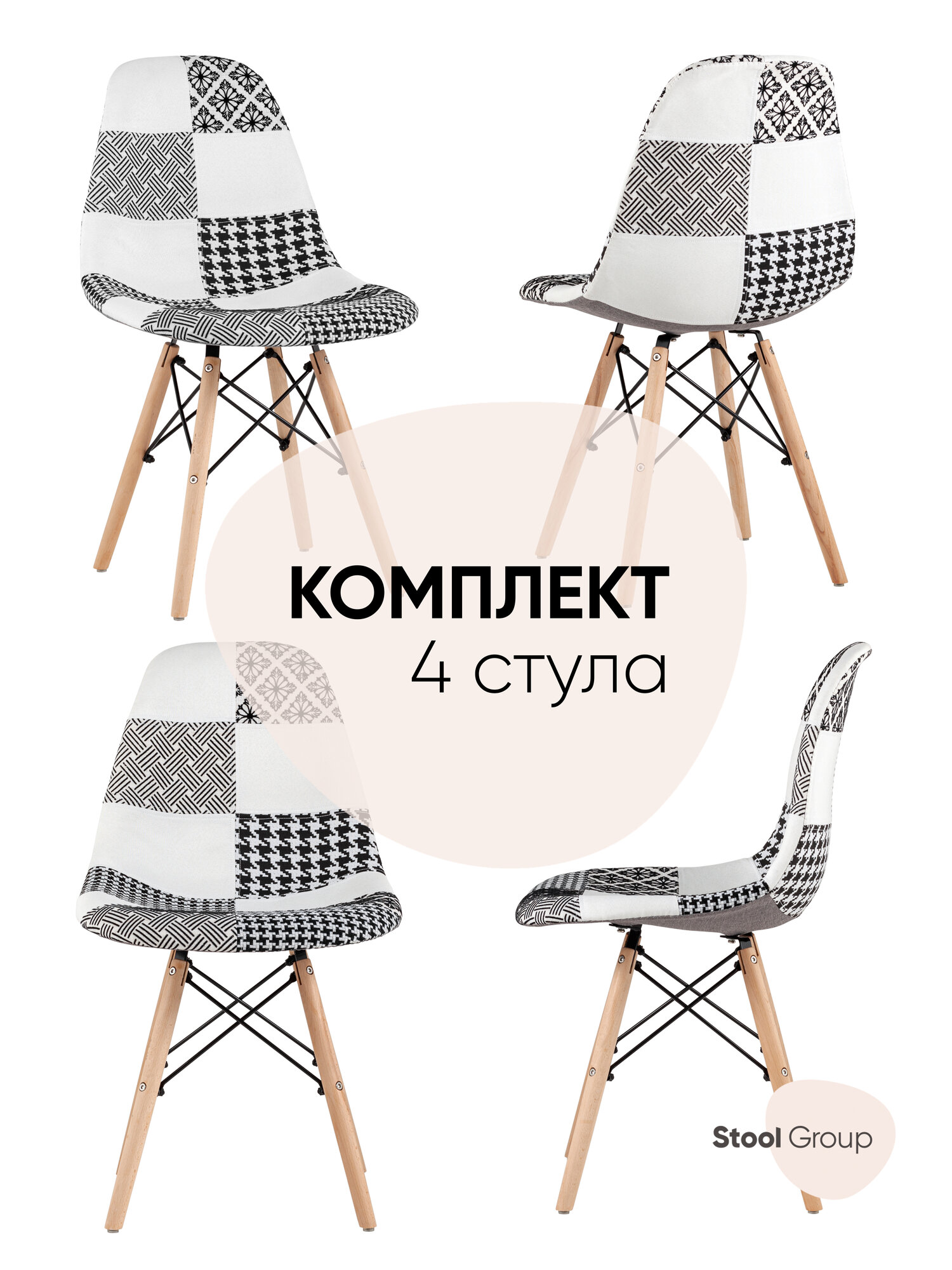 Стул STOOL GROUP Eames обивка в стиле пэчворк черно-белый, ножки массив бука 3 990 ₽