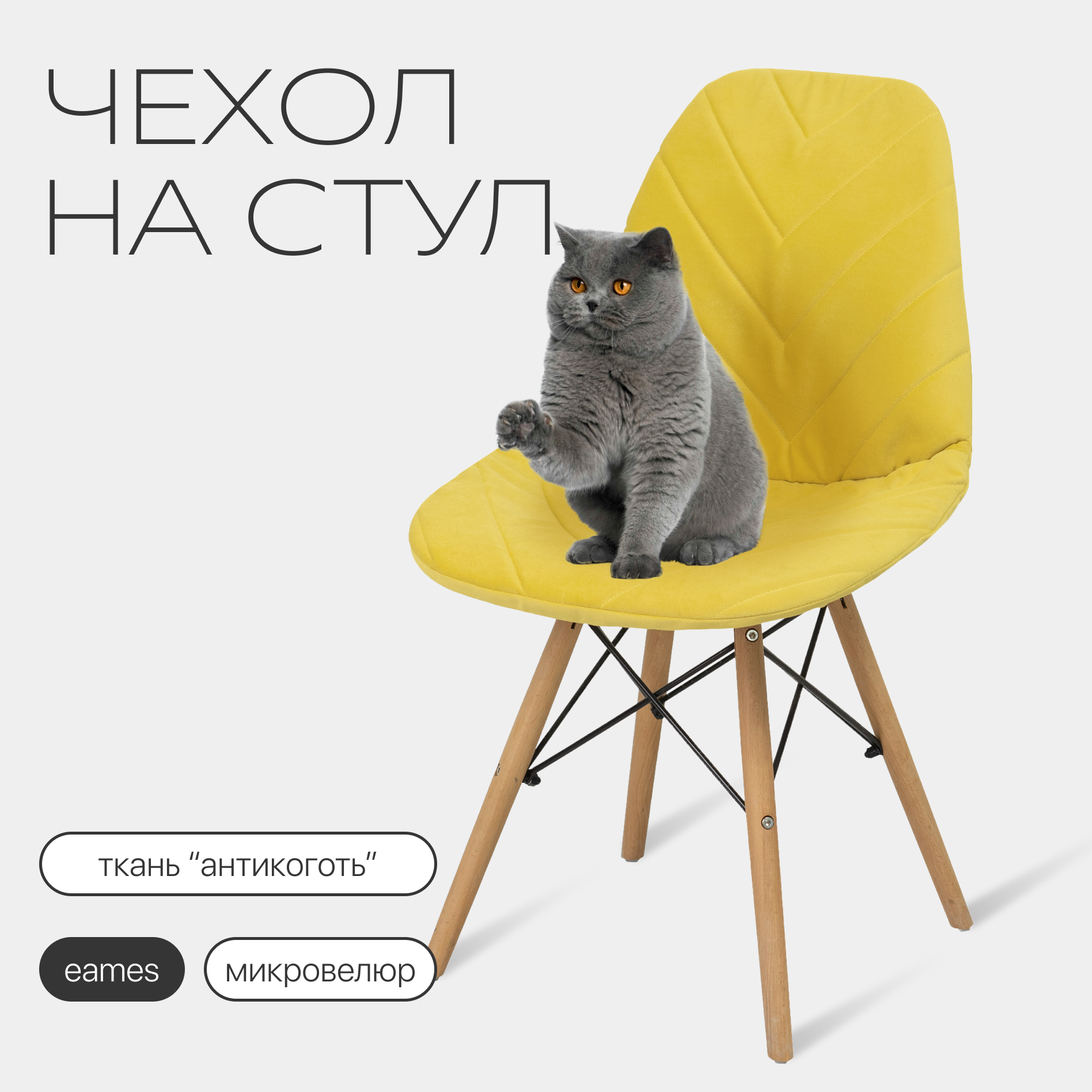 Отзывы на Чехол на стул со спинкой Eames из микровелюра, 40х46см, горчичный