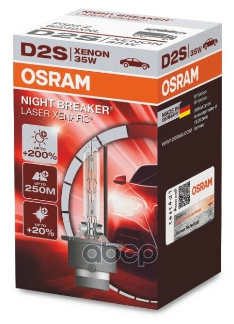 D2s (35W) Лампа Xenarc Night Breaker Laser, 1Шт, Картон Osram арт. 66240XNL