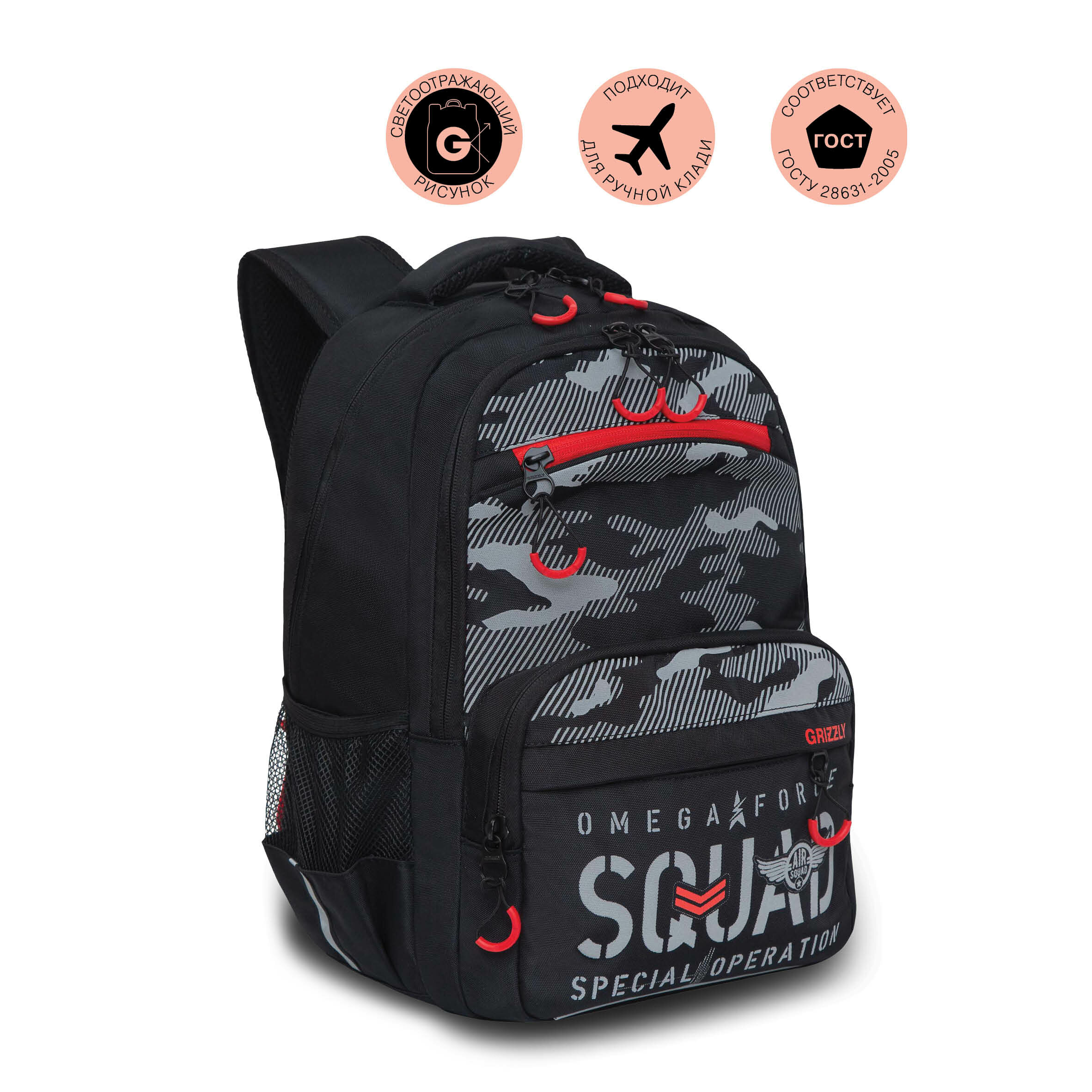 Школьный рюкзак с эргономичной спинкой GRIZZLY RU-436-2/1 черный - красный, 2 отделения, 832грамм, 47x32x17см