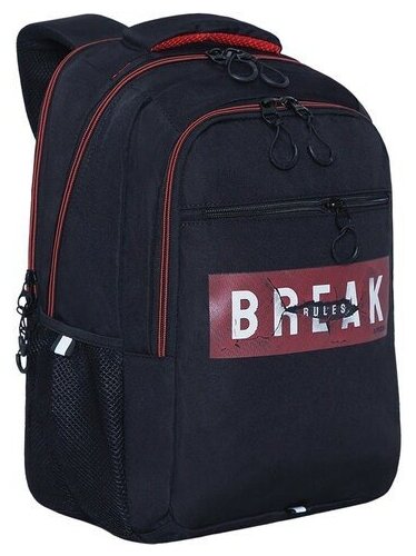 Школьный рюкзак с эргономичной спинкой GRIZZLY RU-436-2/1 черный - красный, 2 отделения, 832грамм, 47x32x17см