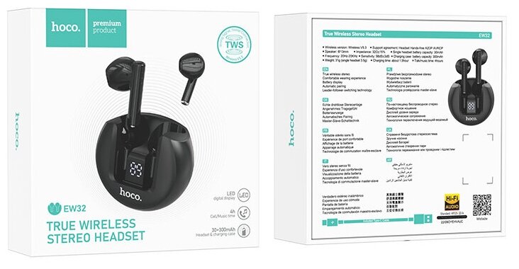 Наушники EW32 HOCO, беспроводные наушники, черные информация: