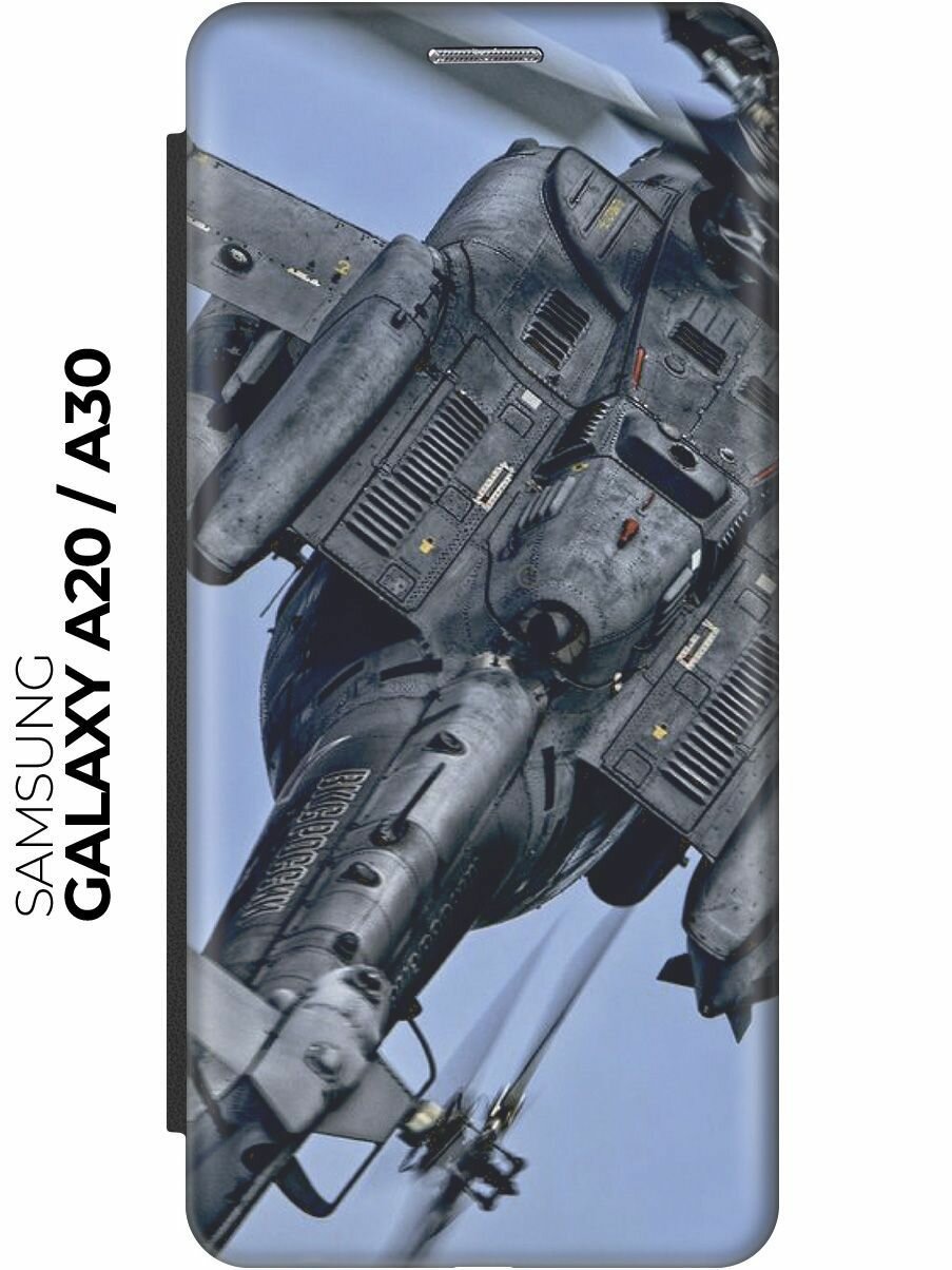 Чехол-книжка Боевой вертолет на Samsung Galaxy A20 / A30 / Самсунг А20 / А30 черный информация: