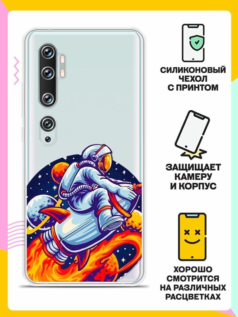 Силиконовый чехол на Xiaomi Mi Note 10 Астронавт на ракете / для Сяоми Ми Ноут 10 информация: