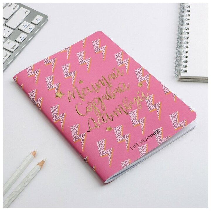 10 цен на Блокнот-планинг софт-тач с тиснением "Мечтай.Создавай.Действуй молния" , 18 х 24 см, 32 листа