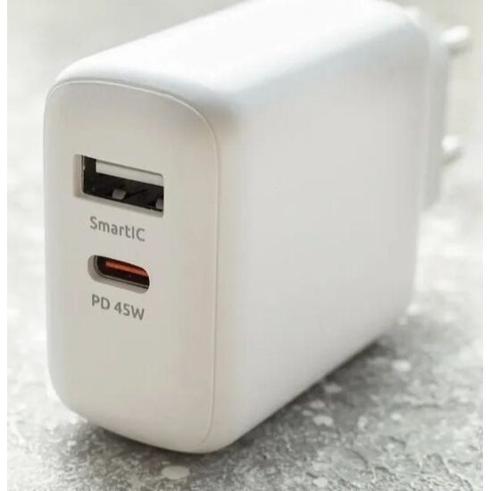 Сетевое зарядное устройство OLMIO 45W, Type-C +USB, PowerDelivery, Smart IC, белый информация: