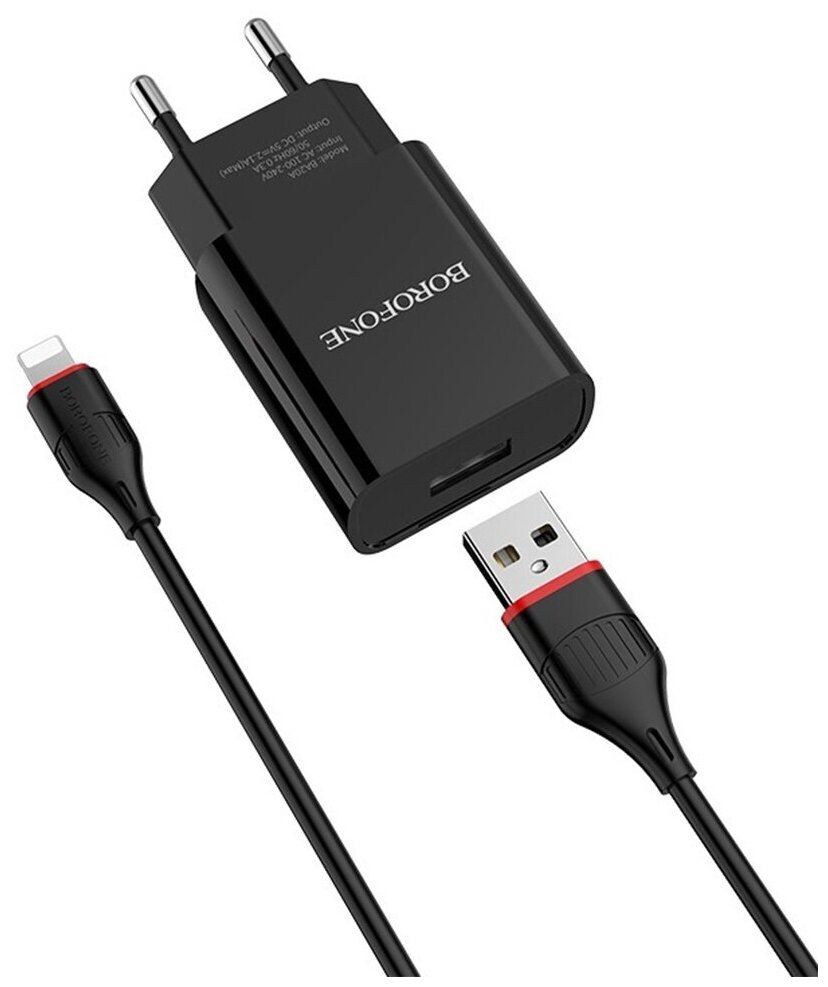10 цен на Сетевое зарядное устройство Borofone BA20A 2.1А / 5V+ кабель Lightning
