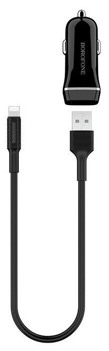 Автомобильное зарядное устройство 2xUSB с кабелем Lightning Borofone BZ2 Joyroad - Черное информация: