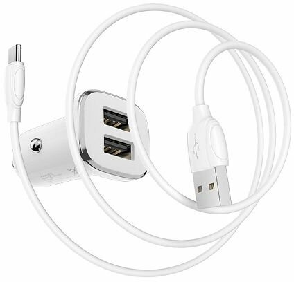 Отзывы на Автомобильная зарядка BOROFONE BZ12 с двумя USB-портами и кабелем Type C, 2,4А . Цвет-белый