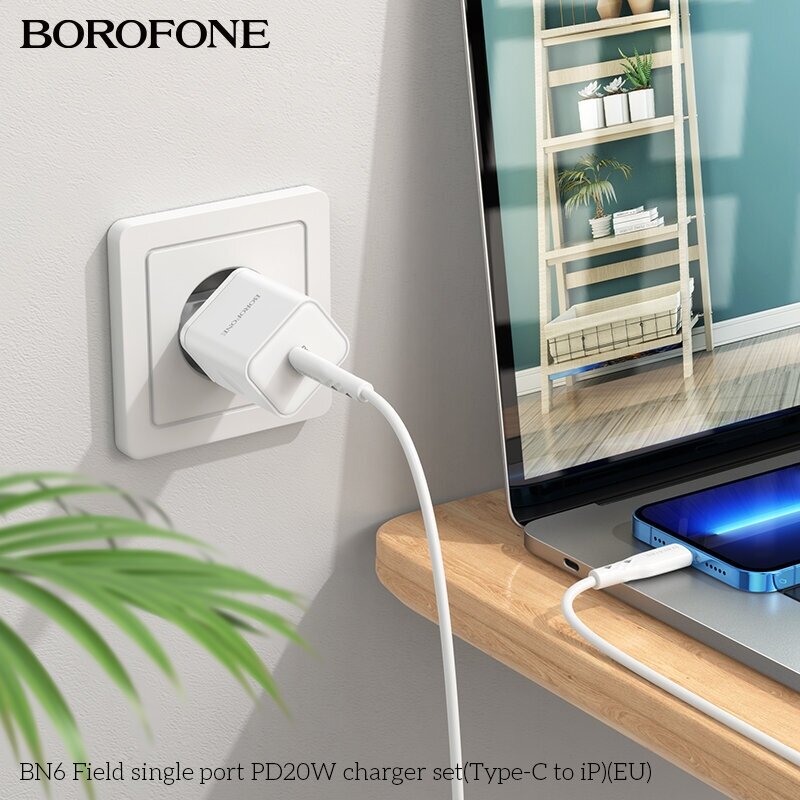 Сетевое зарядное устройство BOROFONE BN6 Field 1xUSB-C PD20W, 3A + кабель USB-C Lightning 8-pin, 1м (белый) информация: