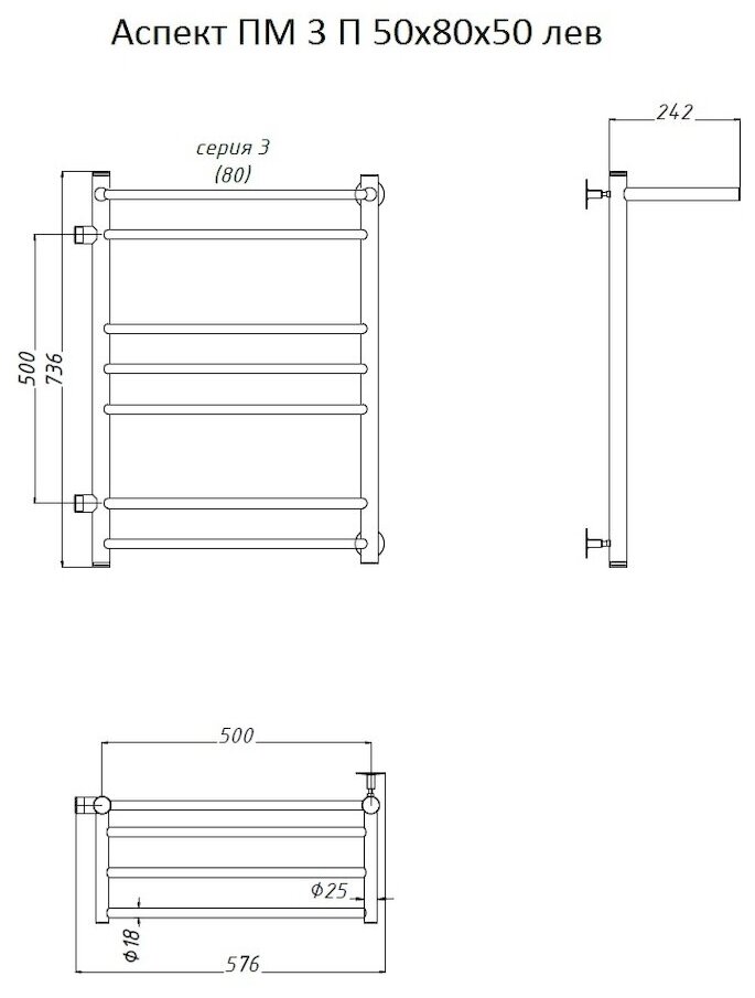 Полотенцесушитель водяной Тругор Аспект ПМ 3 П 50*80*50 (ЛЦ6) левый информация: