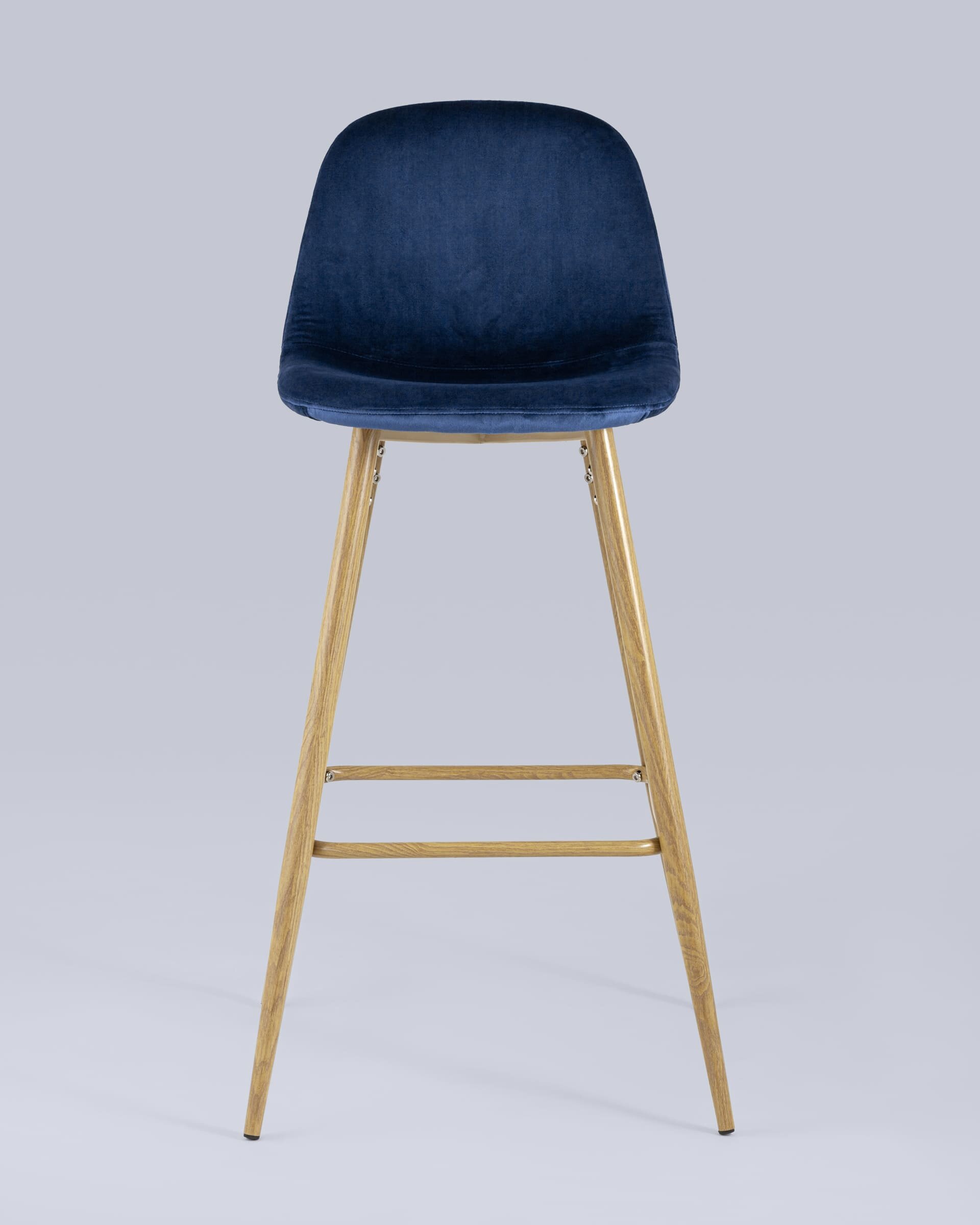Стул барный STOOL GROUP Валенсия синий обивка из велюра ножки из металла стилизованные под дерево с подножкой информация: