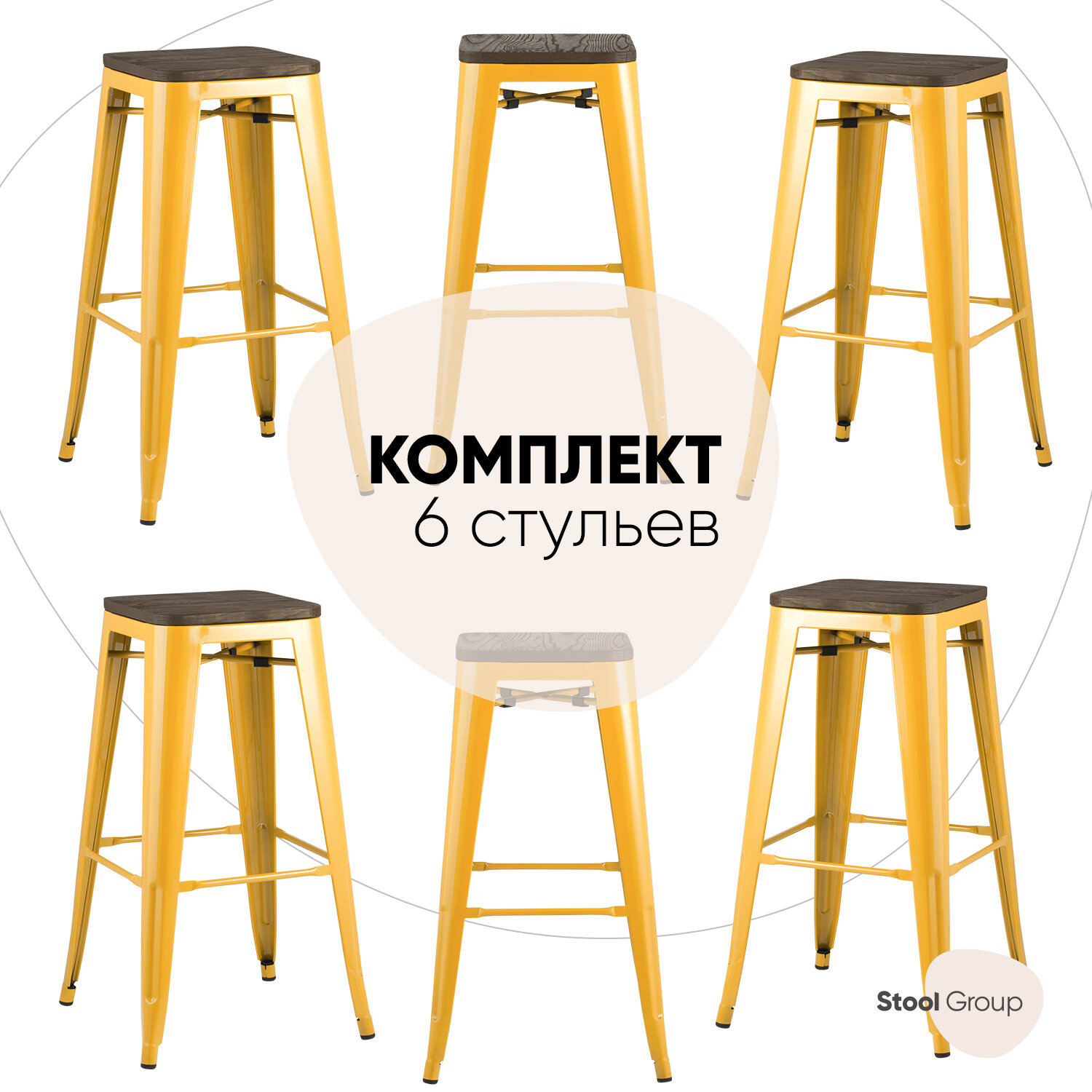 Стул барный TOLIX желтый глянцевый + темное дерево(комплект 6 шт) информация: