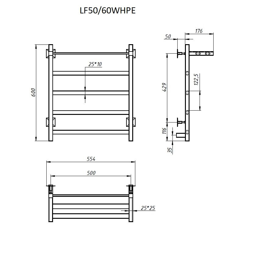Лофт полотенцесушитель электрический 500х800 мм /7п/, белый матовый (LF50/80WHE)