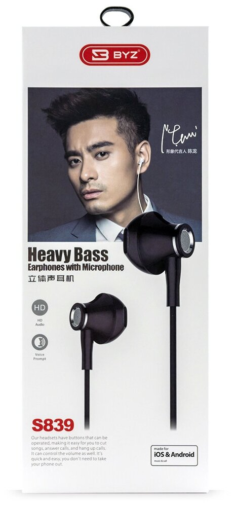 Наушники проводные BYZ S839 вкладыши с микрофоном, 1,2 метра, черный информация: