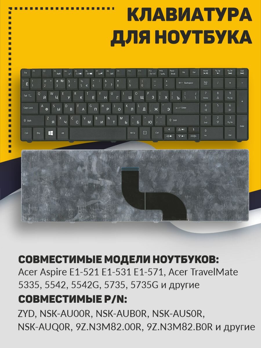 Клавиатура для ноутбука Acer Aspire E1-521 E1-531 E1-571 черная информация: