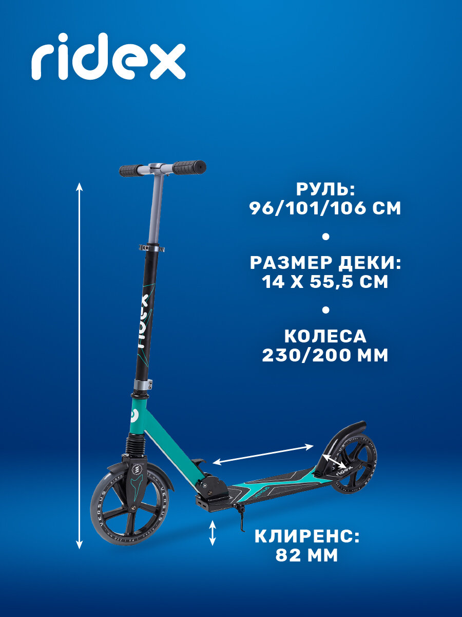 Самокат Ridex 2-колесный Versus 230/200 мм, зеленый информация: