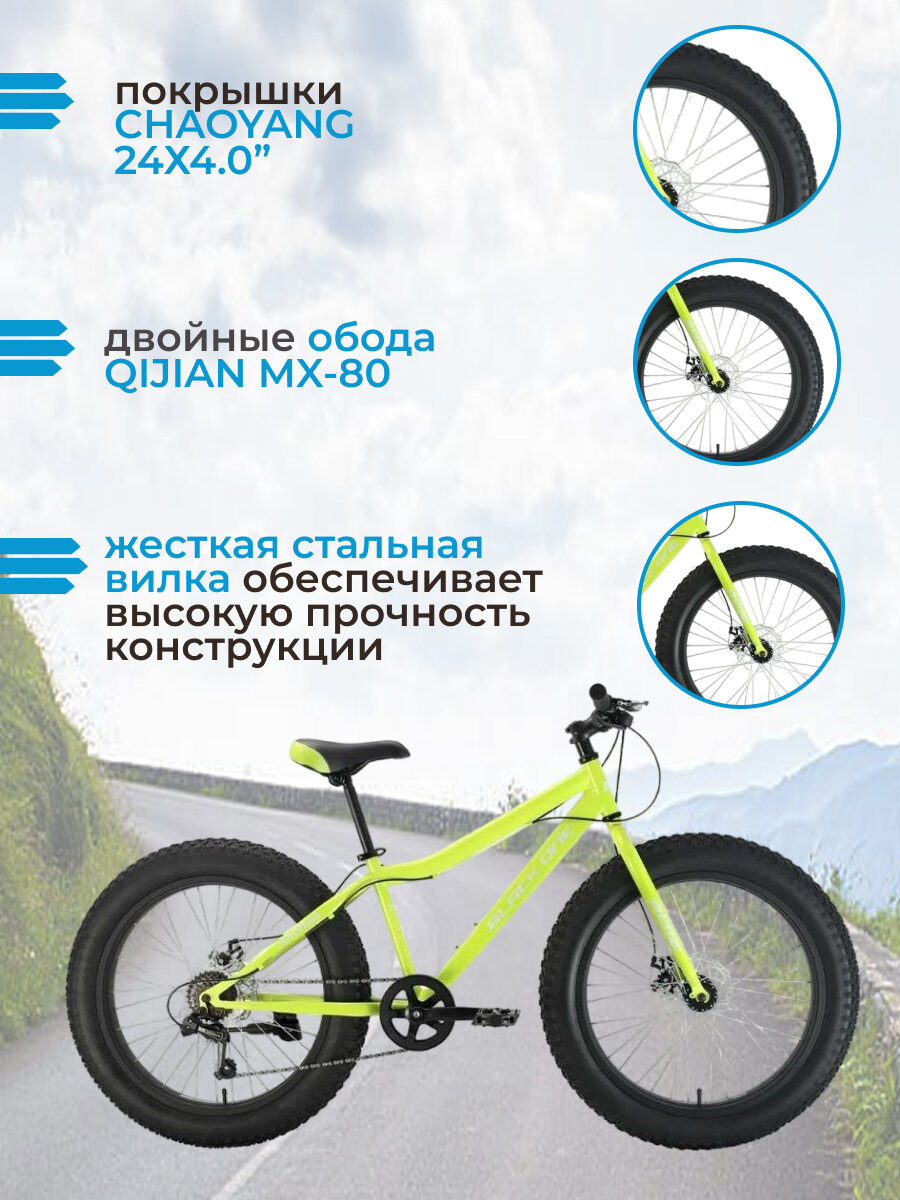 Подростковый велосипед фэтбайк Black One Monster 24 D 7 скоростей 2022 года рама 14,5" зеленый/белый/зеленый