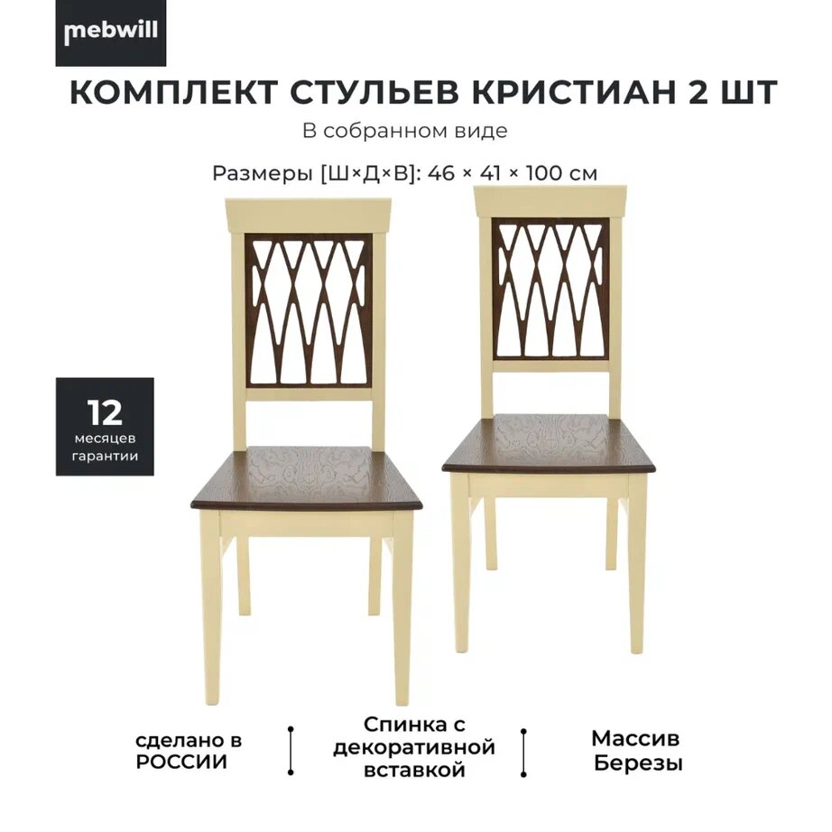 10 цен на Комплект стульев Аврора Кристиан Слоновая кость/Орех темный 2шт