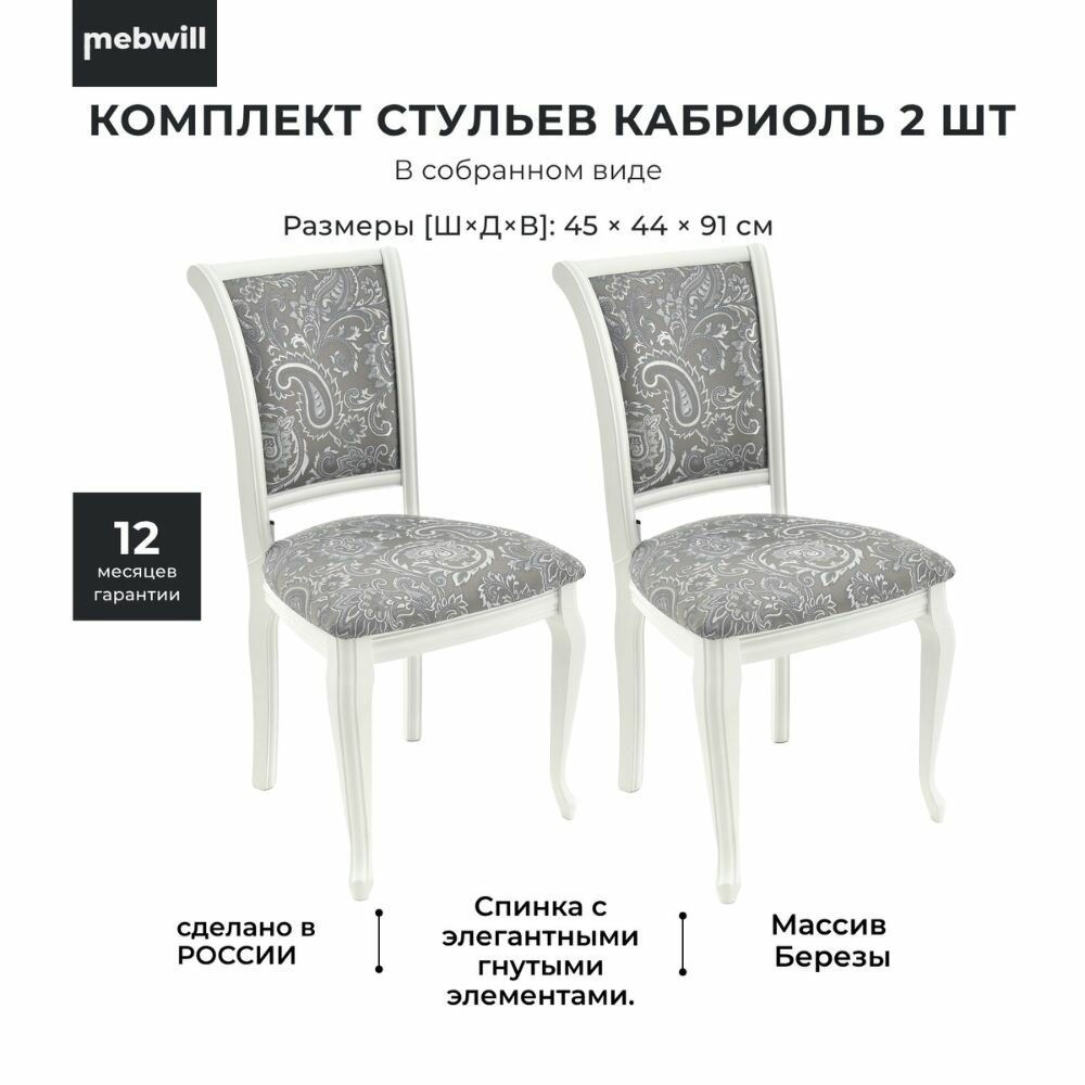10 цен на Комплект стульев Аврора Кабриоль мягкий Эмаль белая/Патина серебро, 2шт