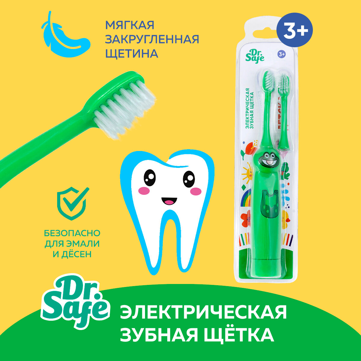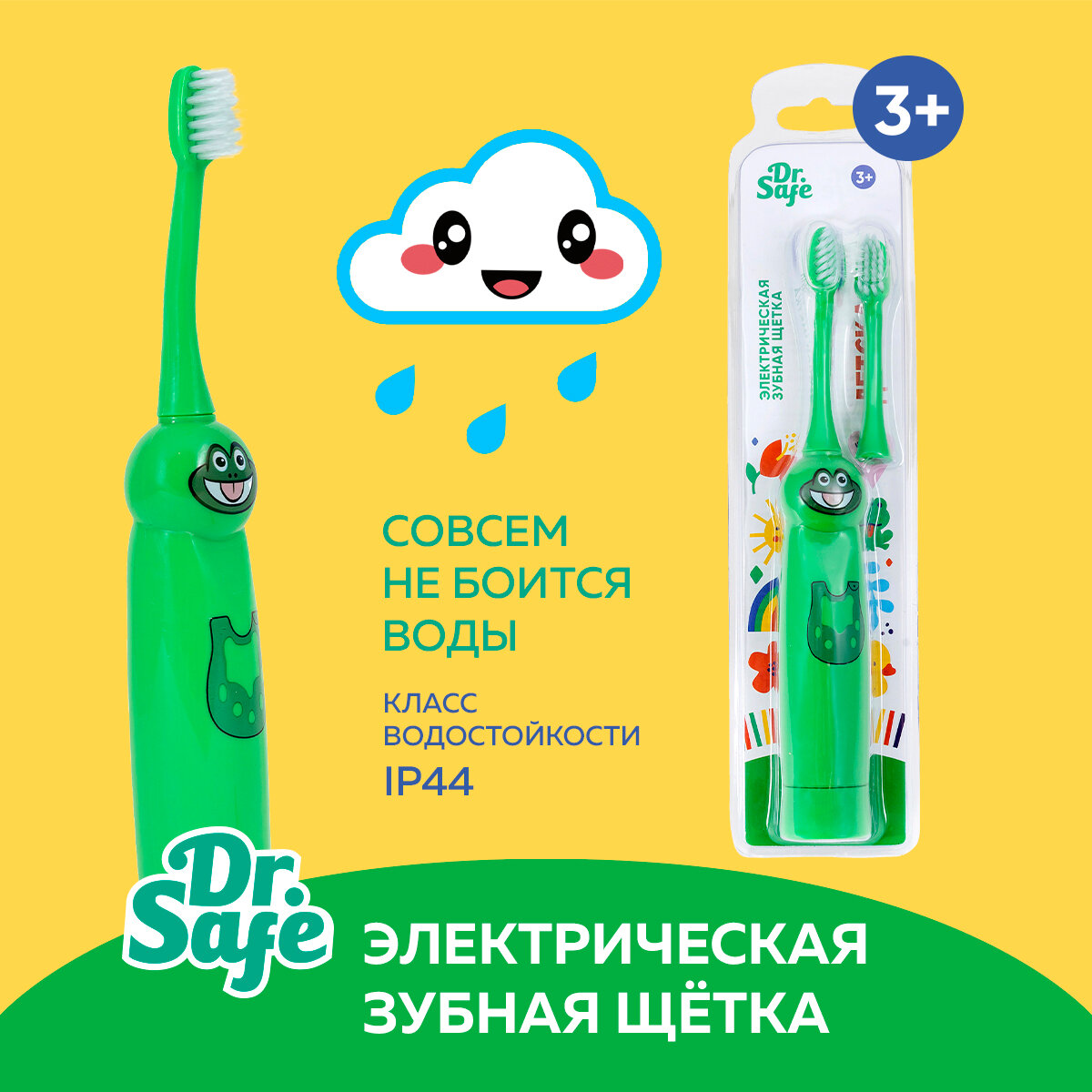 DR.SAFE Детская электрическая зубная щетка Kids "Лягушка", 1 насадка, от 3 лет, на батарейках информация:
