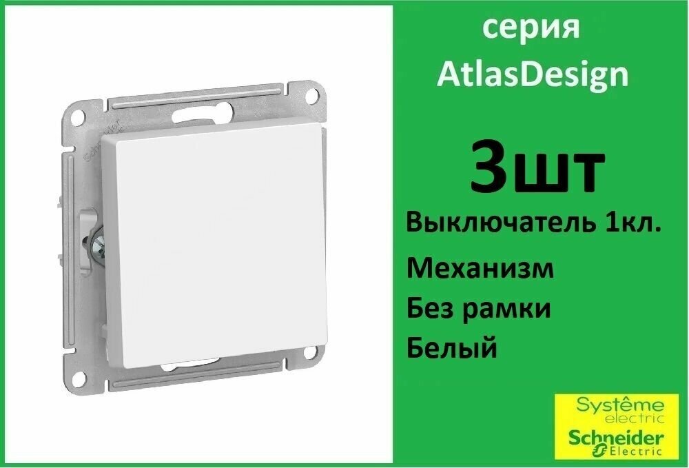 Schneider Electric AtlasDesign Выключатель 1-клавишный Белый сх.1, 10АХ, механизм (комплект 3шт) информация: