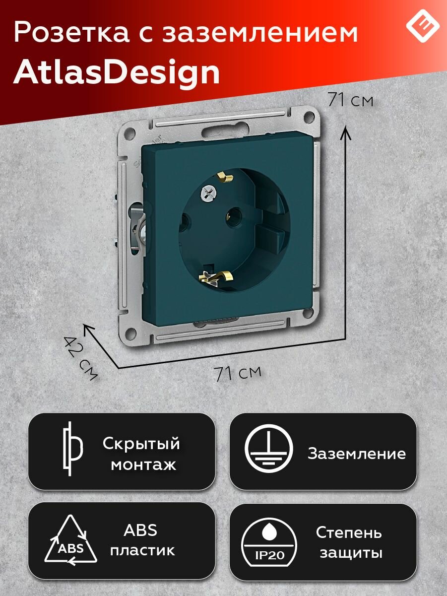 Розетка с заземлением, изумруд Schneider Electric AtlasDesign информация:
