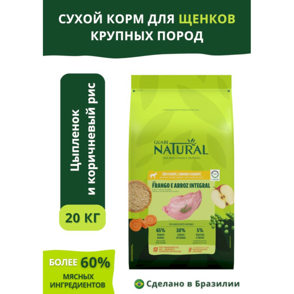 Guabi Natural Puppy cухой корм для щенков крупных пород, с цыпленком и коричневым рисом - 20 кг информация: