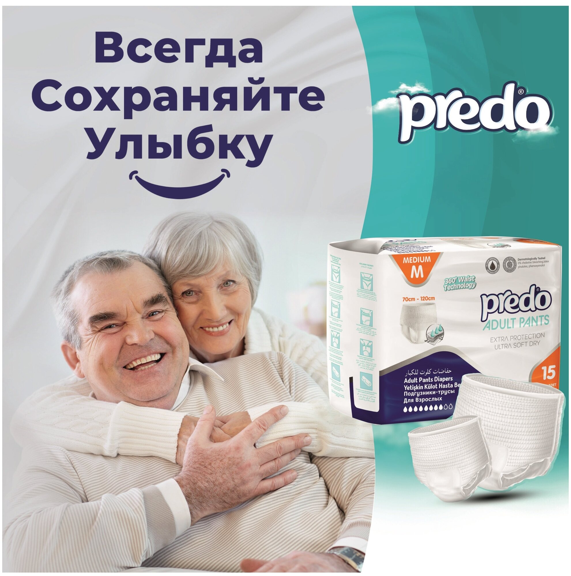 Подгузники-трусы для взрослых Predo размер М (85-125 см), 15 шт. информация: