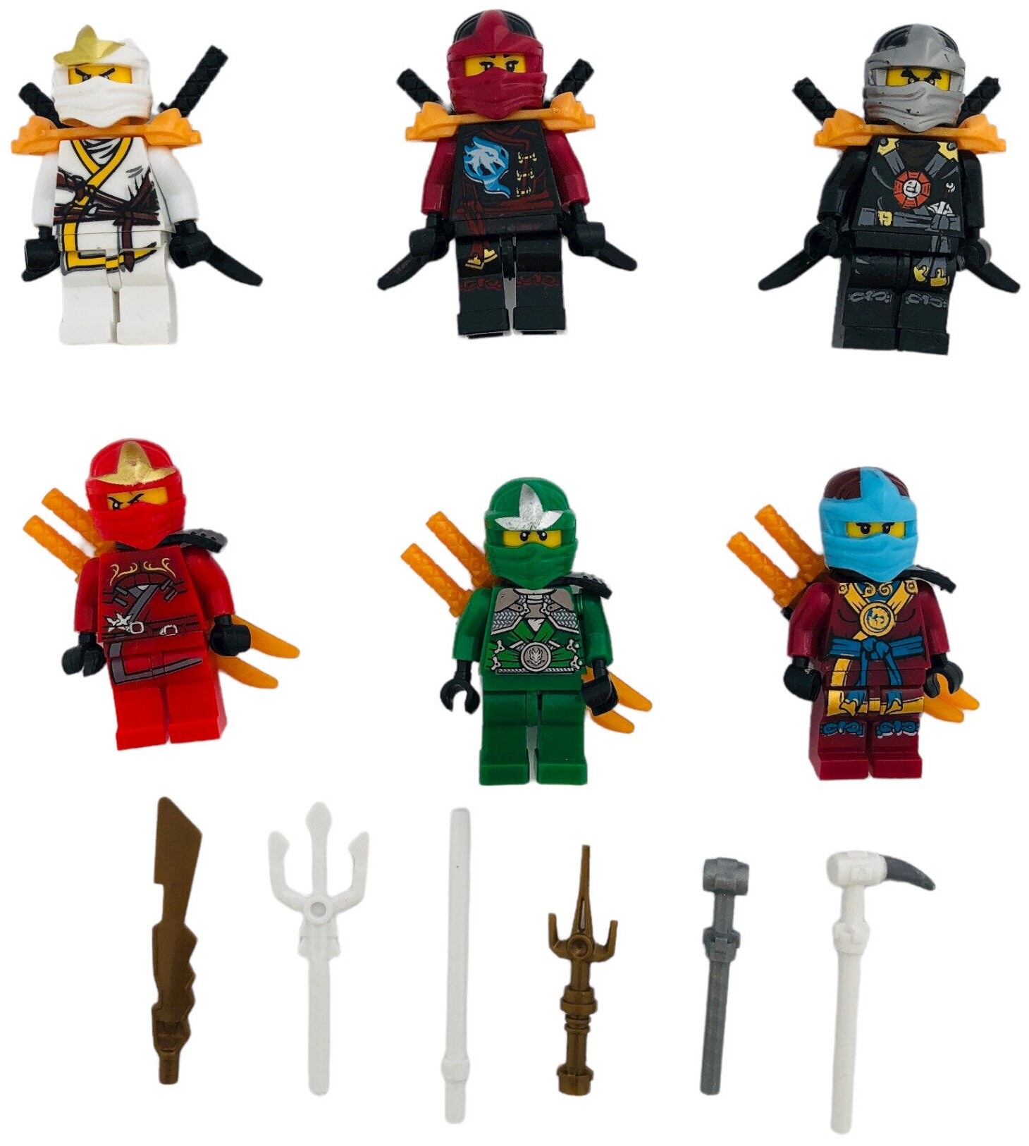 10 цен на Набор фигурок Ниндзяго / Минифигурки / Игрушка человечки 6 шт Ниндзя с оружием / Минифигурки Ninja совместимые / Мини фигурки Ninjago