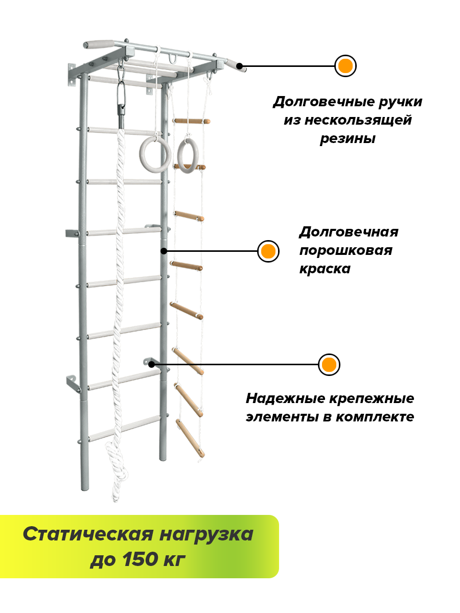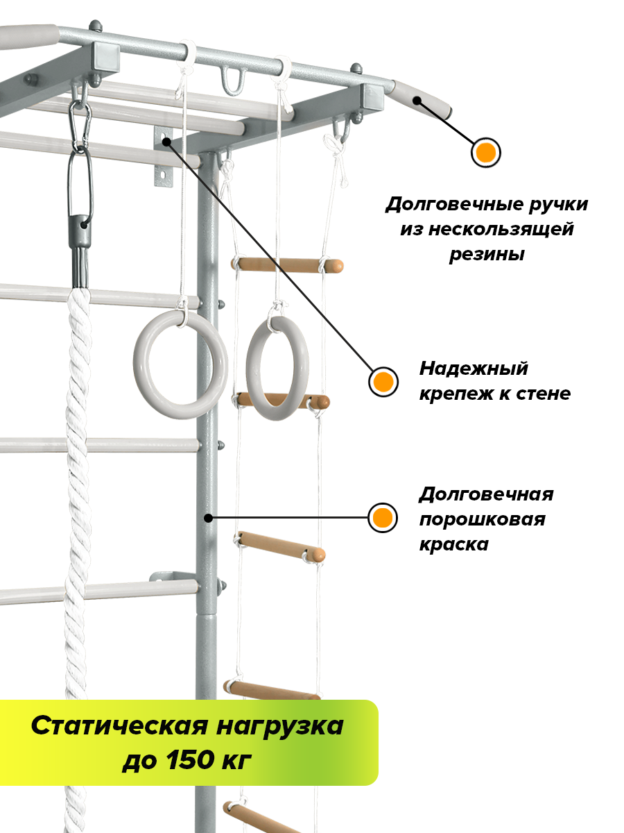 | В комплекте | веревочная лестница, гимнастические кольца, канат |
