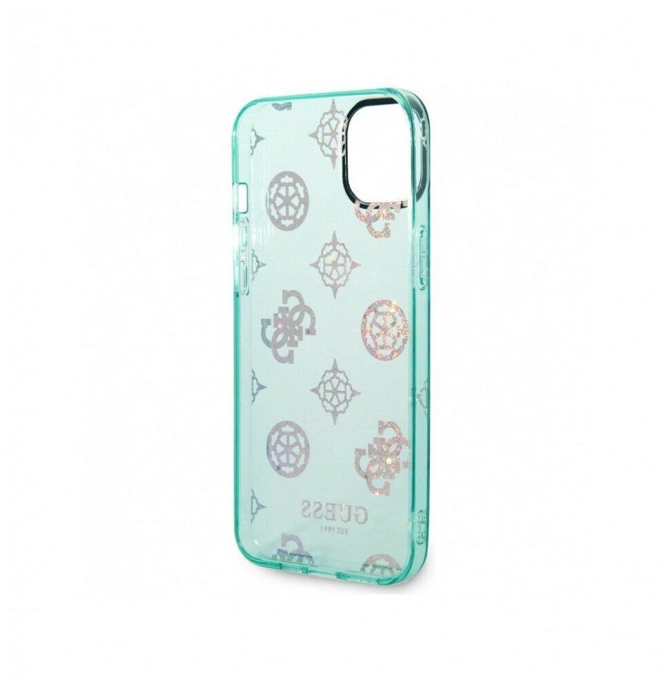 Отзывы на Чехол CG Mobile Guess PC/TPU Peony glitter Electroplated camera Hard для iPhone 14 Plus, цвет Бирюзовый (GUHCP14MHTPPTT)