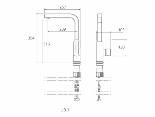 Смеситель для кухни с подключением к фильтру с питьевой водой из нержавеющей стали SUS304 Calorie CAL50116-3