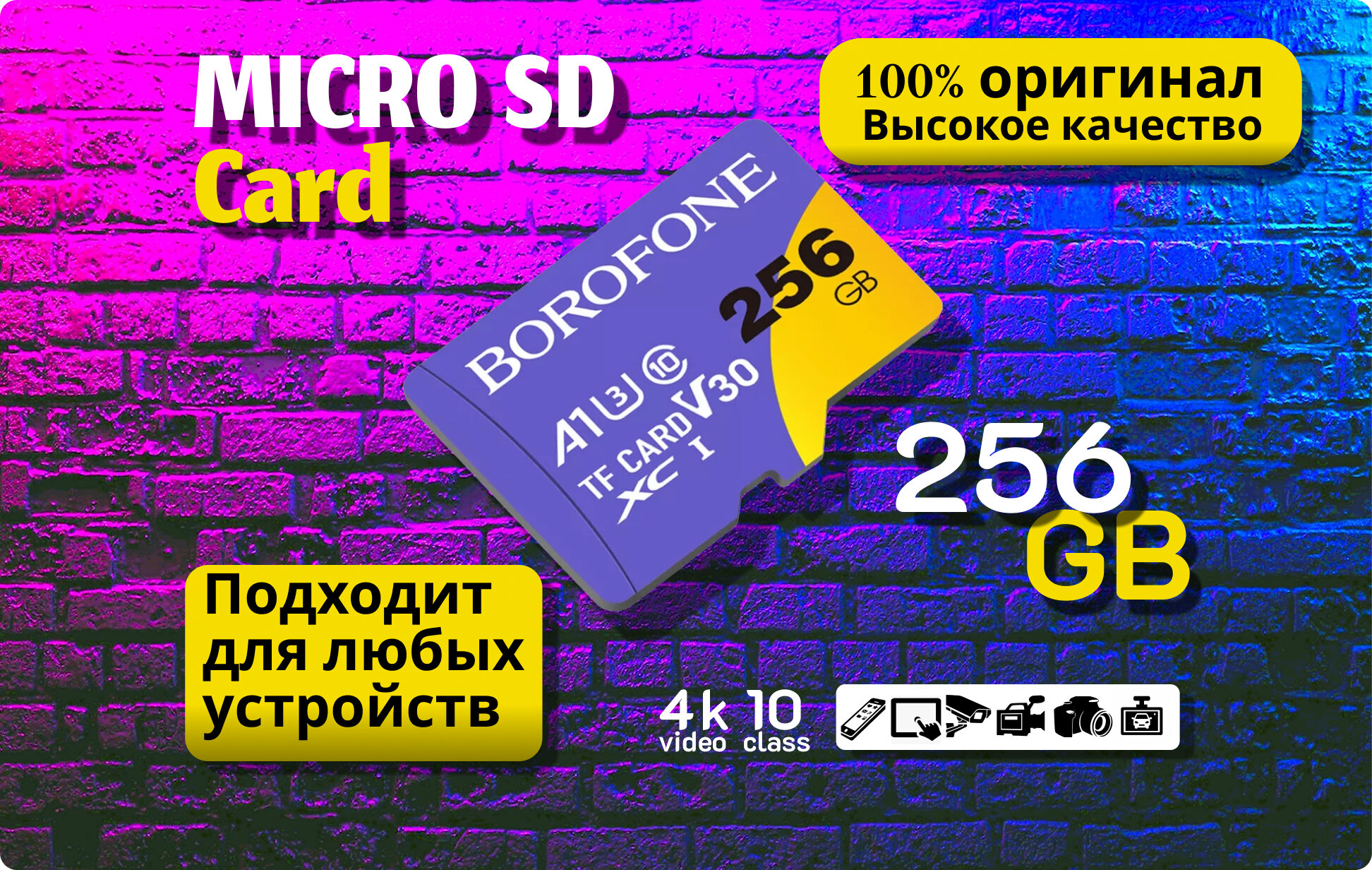 Micro SDXC карта памяти Borofone 256GB Class 10 (без адаптера) информация: