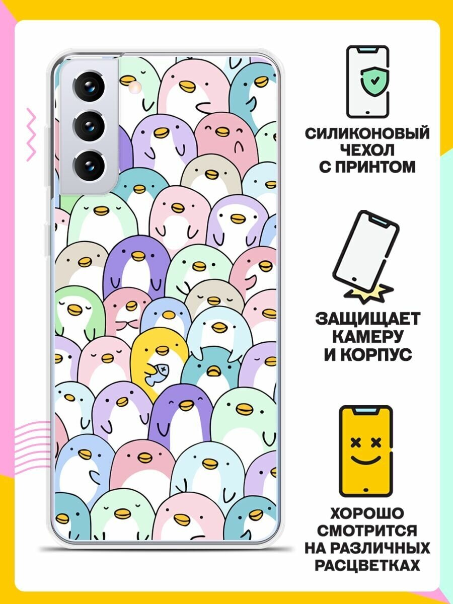 Отзывы на Силиконовый чехол на Samsung Galaxy S21+ Пингвины с рыбой / для Самсунг Галакси С21 Плюс
