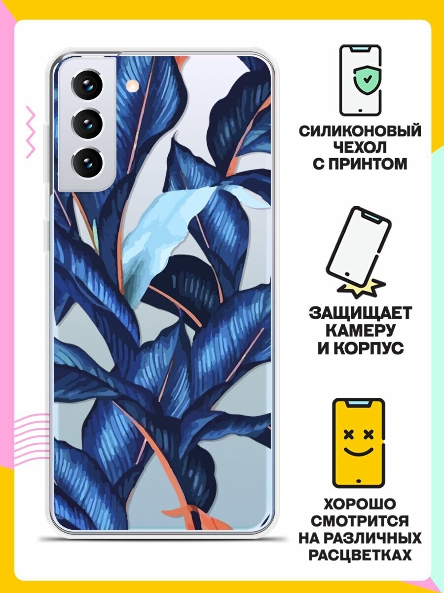 Отзывы на Силиконовый чехол на Samsung Galaxy S21+ Синие листья / для Самсунг Галакси С21 Плюс