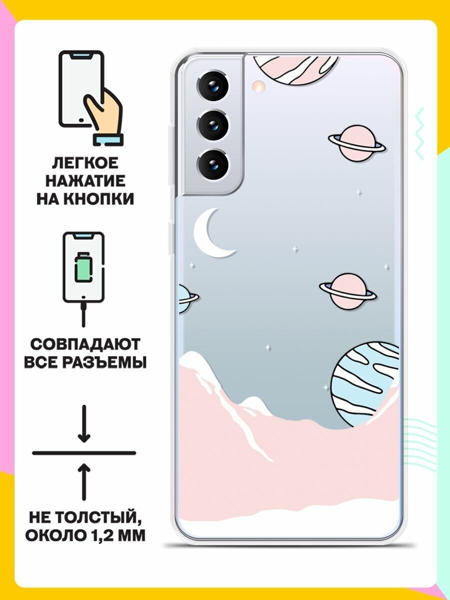Силиконовый чехол на Samsung Galaxy S21+ Розовые горы / для Самсунг Галакси С21 Плюс информация: