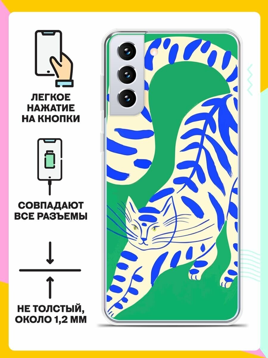 Отзывы на Силиконовый чехол на Samsung Galaxy S21+ Кот на зеленом / для Самсунг Галакси С21 Плюс