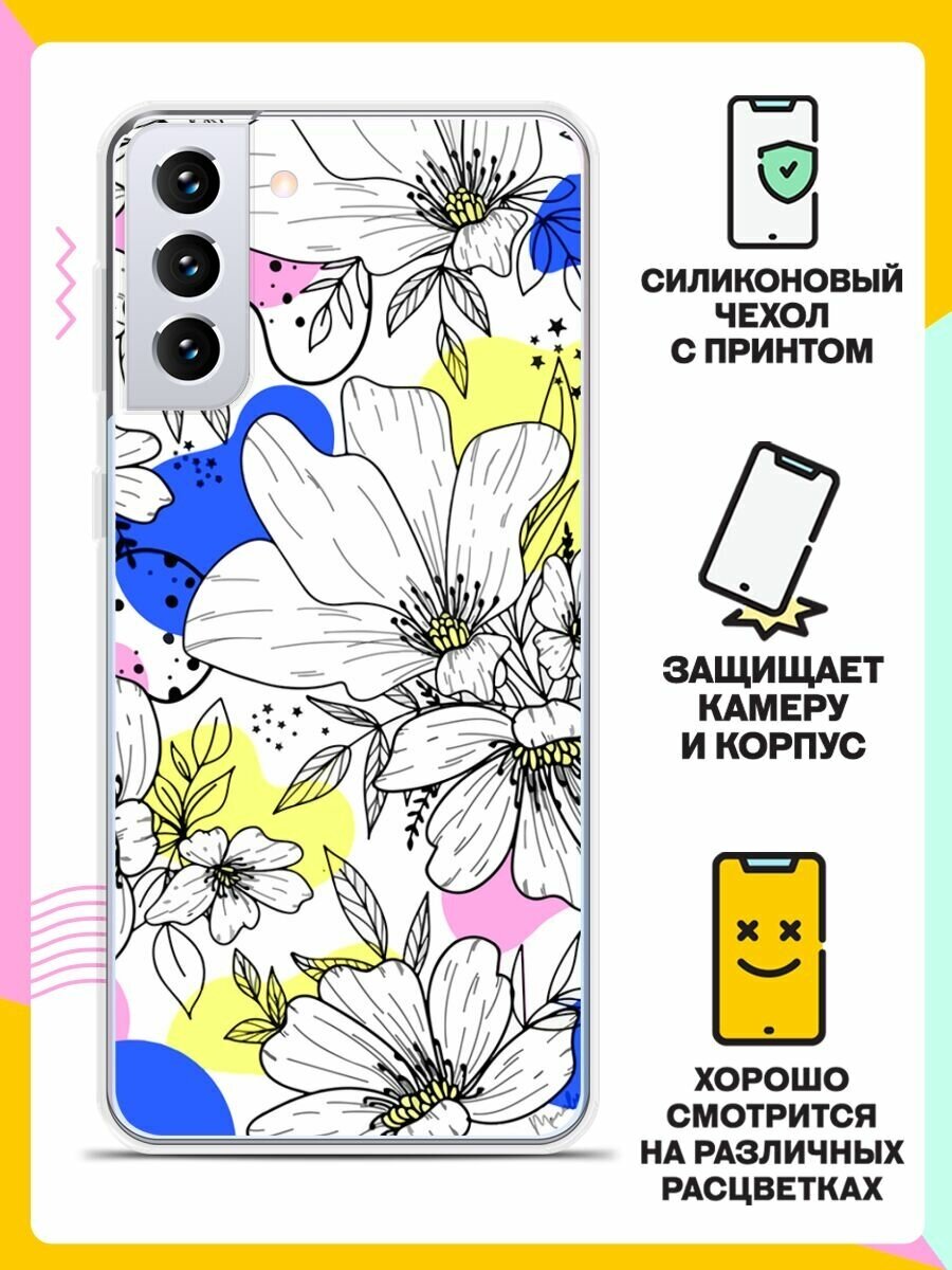 Отзывы на Силиконовый чехол на Samsung Galaxy S21+ Белые цветы / для Самсунг Галакси С21 Плюс