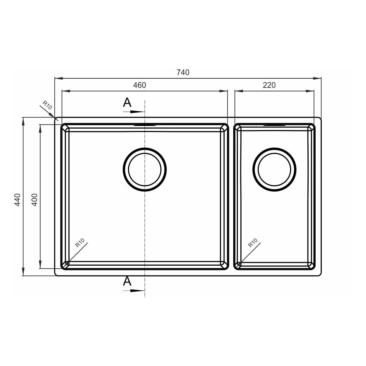 Мойка кухонная прямоугольная Флорентина Оптима-HM Сатинированная (OHM.460/220.400.B.20.S.10) информация: