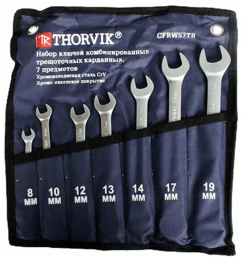 Отзывы на Набор комбинированных ключей трещоточных карданных 8-19 мм 7 предметов Thorvik CFRWS7TB