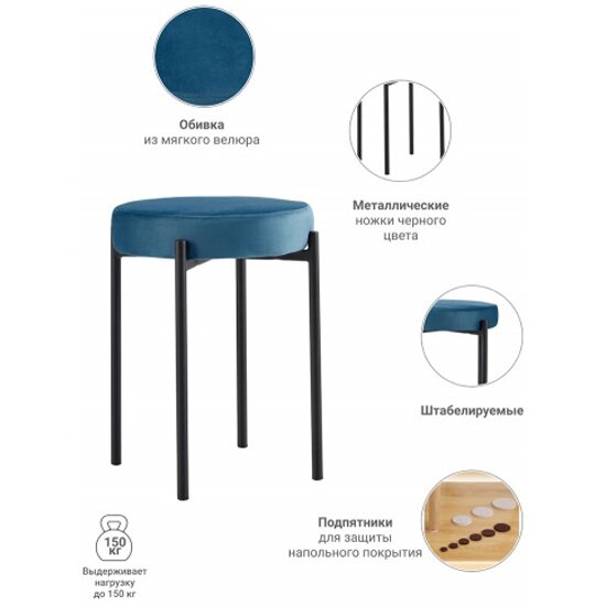 Табурет для кухни Bug бирюзовый / Стулья для кухни / Табурет круглый / Мягкий табурет / Стул мягкий / Кухонный стул / Стул обеденный
