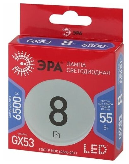 Отзывы на Лампа светодиодная LED GX-8W-865-GX53 R (диод, таблетка, 8Вт, хол, GX53) | код Б0045333 | ЭРА (5шт.в упак.)