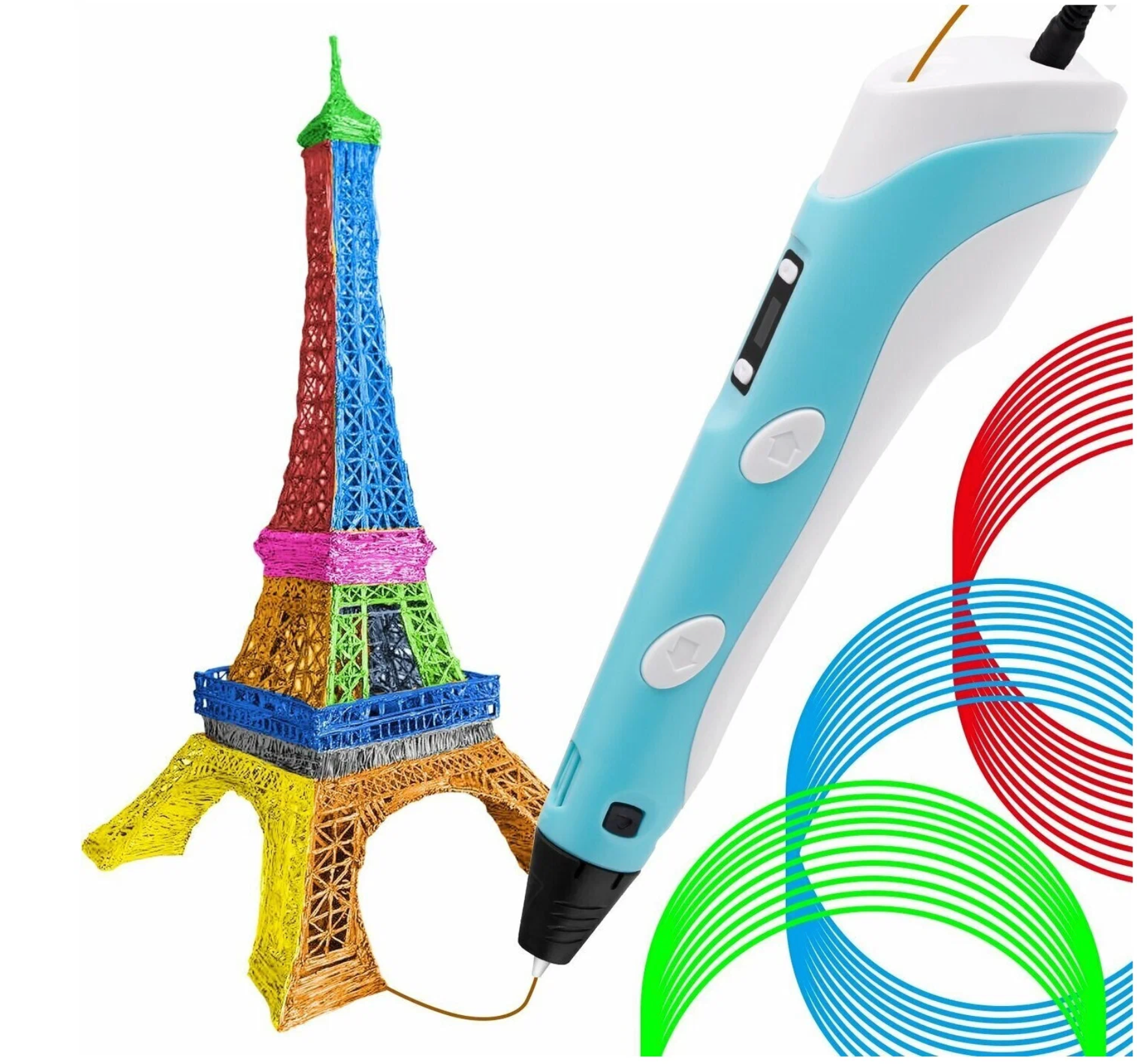 10 цен на 3D ручка «3D Pen-2» поколение с дисплеем (3Д ручка ПЭН 2) голубая